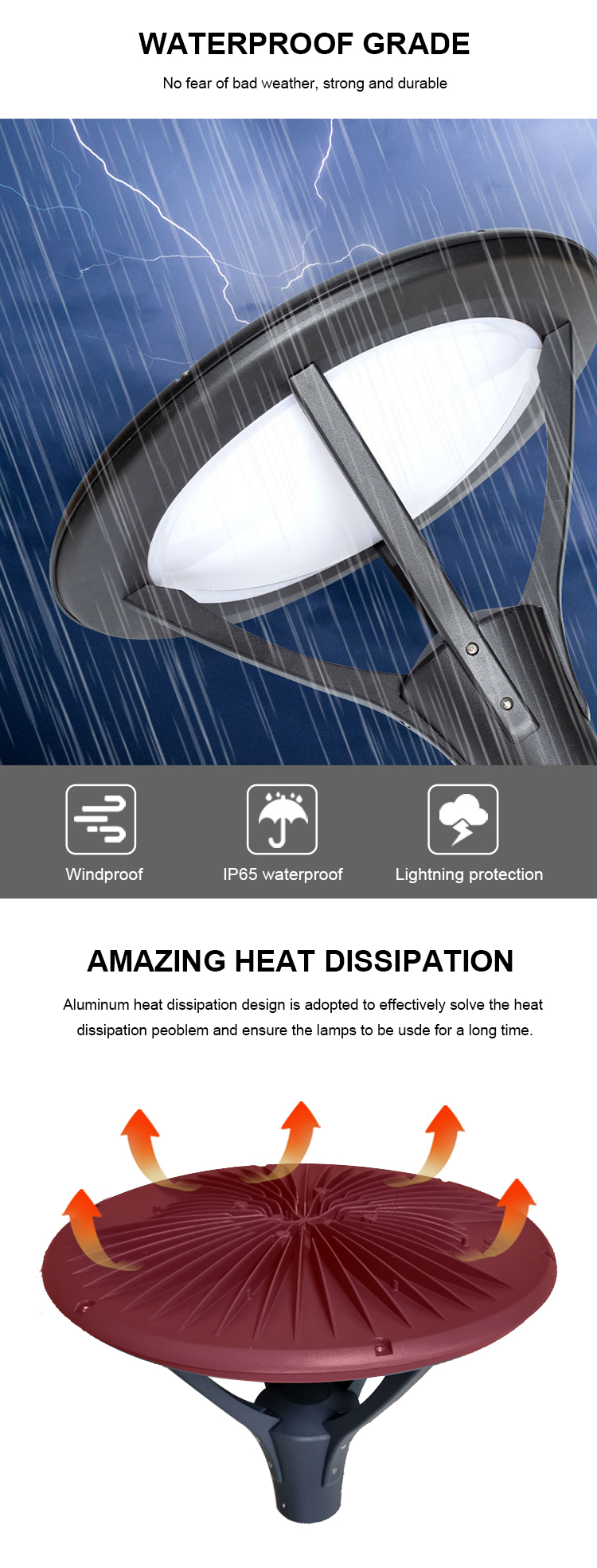 LED Garden, LED Path Lights, round landscape, Dusk To Dawn, 3000LM 4000LM warm color